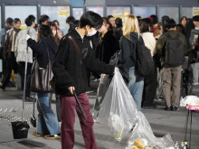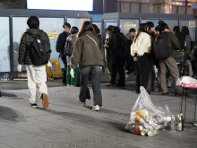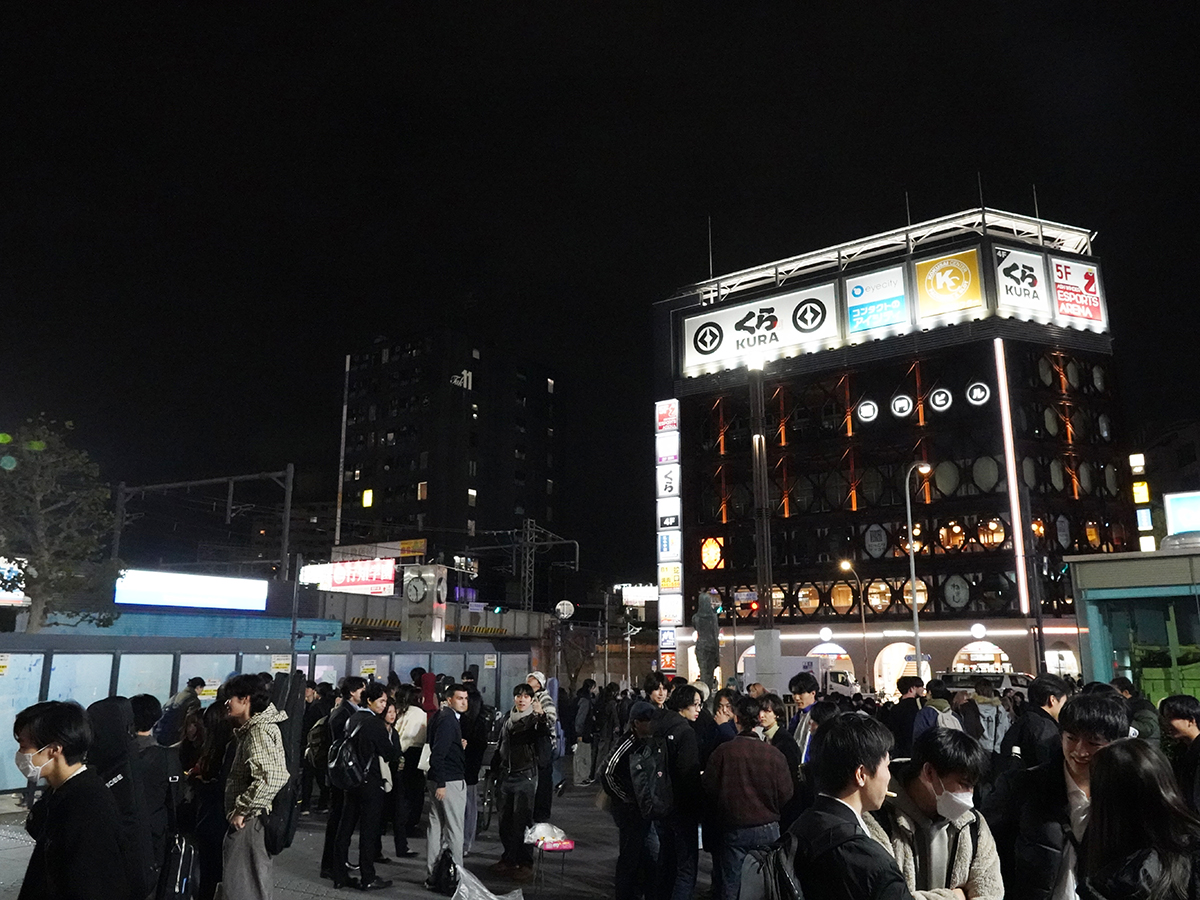 にぎわう夜の高田馬場駅前ロータリー広場=早大サークル「ロータリーの会」が駅前広場を24時間密着