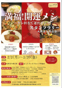 チラシ(裏面)=大隈通り商店会が「満福!開運メシ スタンプラリー」