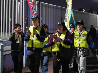 「ヒューマンアカデミー日本語学校東京校」(新宿区高田馬場4)のボランティアサークルが2月27日、高田馬場周辺で防火防犯パトロールを行った。