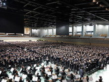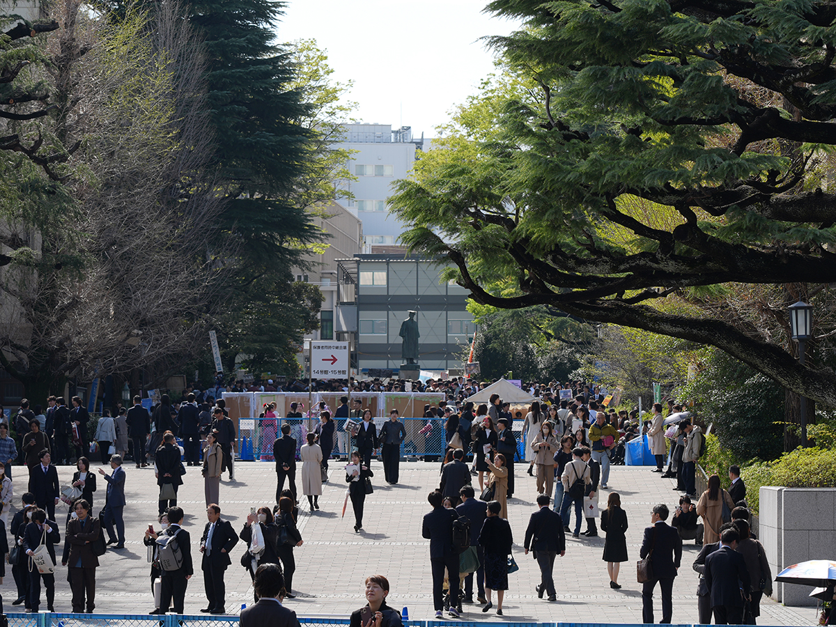 起工式には教育・総合科学学術院の教員などの早大関係者のほか、施工を行う戸田建設、設計監理を担う山下設計などの建設工事関係者、約100人が参加した。9号館は1963(昭和38)年に土地交換を行った水稲荷神社の跡地で、同神社の神職が神事を執り行った。田中愛治早大総長らが地鎮の儀や玉串奉奠(ほうてん)を行った。
