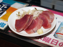 試食会で提供した気仙沼の戻りガツオ=早稲田と気仙沼をつなぐ「早稲田かつおフェスタ」