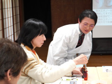 初回となった今回の講座には定員の20人が参加し、薬草・ハーブの基礎知識、安全に利用するための知識、入手方法・栽培方法、利用法を学ぶ座学と、匂い袋、入浴剤、香水の調合実践を行った。