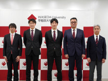 早大を訪問した秋田の水野勇気社長は、両選手との契約合意を発表した。背番号は岩屋選手が18番、堀田選手が7番で、大学時代と同じ。岩屋選手について水野社長は「ポイントガードとしてかなり期待している。リーグを代表するような選手を目指してほしい」と期待を込めた。堀田選手については「シュート力、3ポイントシュートが大きな武器。リーグを代表するようなシューターになれるように、サポートしていければ」と話した。
