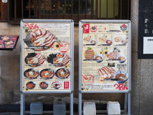 看板メニューのつけ麺は、チャーシュー5枚、味玉、のり3枚などをトッピングする「特製つけ麺」(1,300円)など5種類を用意。熱盛り、冷盛りが選べ、麺量は並=200グラム、中=250グラム、大=300グラム。110円増しで辛口に変更でき、辛さを10段階から選べる。ラーメンは「和風魚介豚骨ラーメン」(990円)、「特製ラーメン」(1,300円)など6種類を用意。麺量は120グラム(替え玉70グラム)、140グラム(替え玉140グラム、または70グラム)、280グラム(替え玉なし)。自家製のウスターソースが隠し味という「油そば」(990円)の麺量は、並=150グラム、中=230グラム、大=300グラム。麺量はいずれもゆで前。大までは同一料金。
