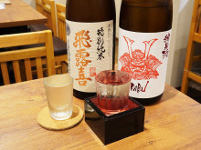 日本酒は、「十四代」「新政」「鍋島」「飛露喜」「醸し人九平次」「田酒」(以上、グラス=550円)のほか、「男山」「AKABU」「上喜元」「八海山」「会津中将」「作(ざく)」「黒龍」「賀茂金秀」「船中八策」などを(120ミリリットル=715円~、180ミリリットル=880円~)用意する。