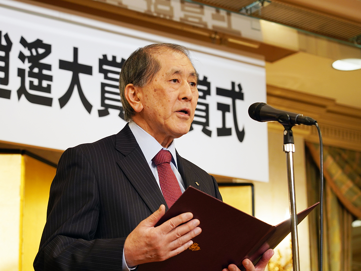 早大の田中愛治総長=第10回早大坪内逍遙大賞授賞式