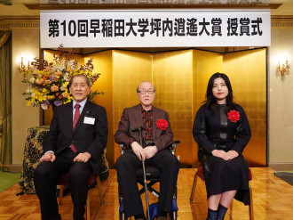 「第10回 早稲田大学坪内逍遙大賞」の授賞式が12月1日、リーガロイヤルホテル東京(新宿区戸塚町1)で行われ、大賞の沼野充義さん、奨励賞の井戸川射子さんが出席した。