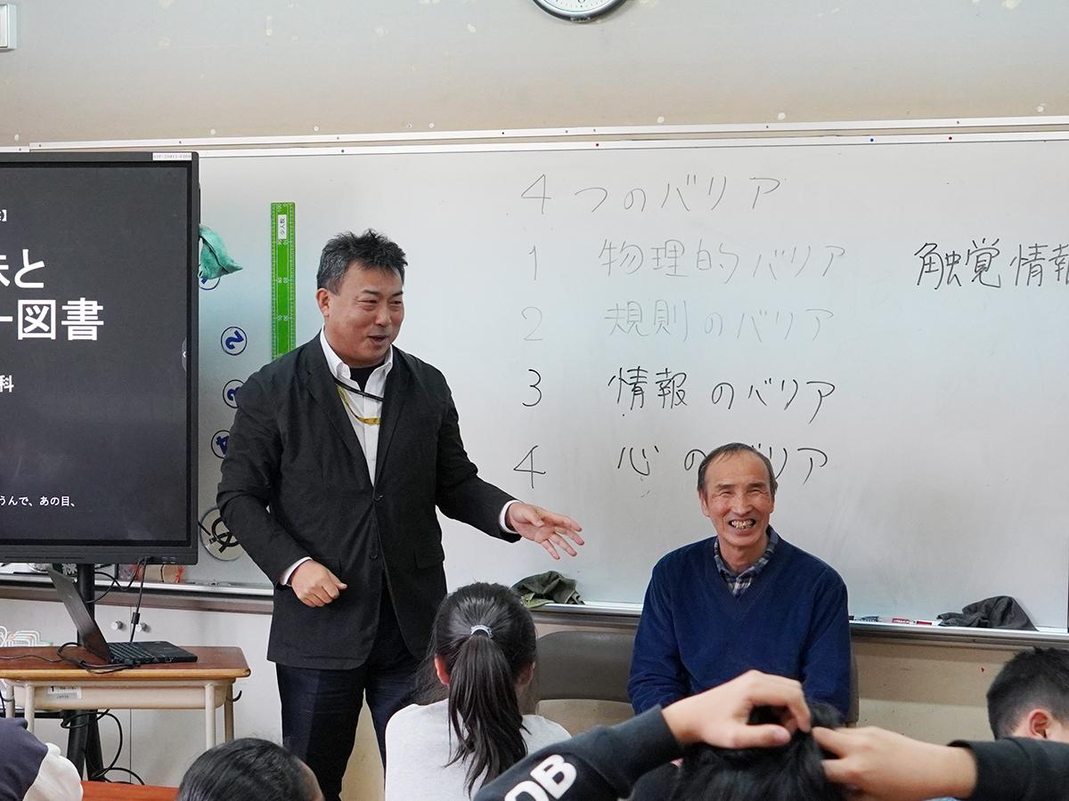 特別授業の様子 その2=東戸山小で「視覚障害者にとって触れることの大切さ」をテーマに特別授