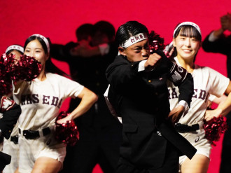 早稲田大学応援部が「第72回早慶戦前夜祭 稲穂祭」を大隈記念講堂(新宿区戸塚町1)で10月28日、開催した。