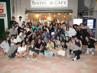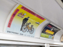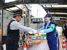 記念撮影の様子=都電荒川線に「ピーポくん号」