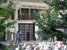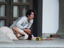 早稲田大学演劇博物館(新宿区西早稲田1)の野外舞台で、シェイクスピアシアタ-が9月26日、シェークスピアの戯曲「ロミオとジュリエット」を上演した。