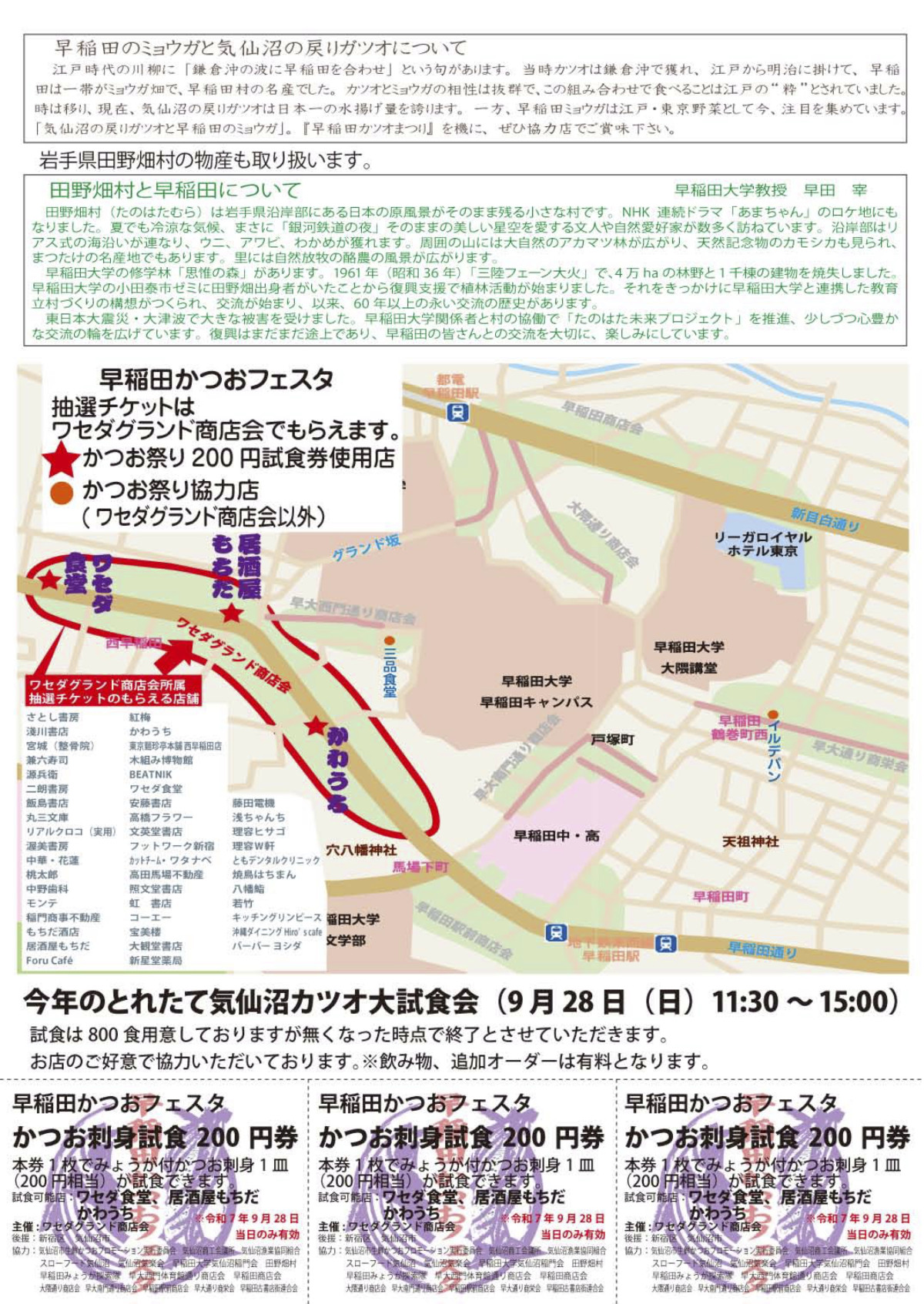 ワセダグランド商店会が地域イベント「早稲田かつおフェスタ」を現在、開催している。