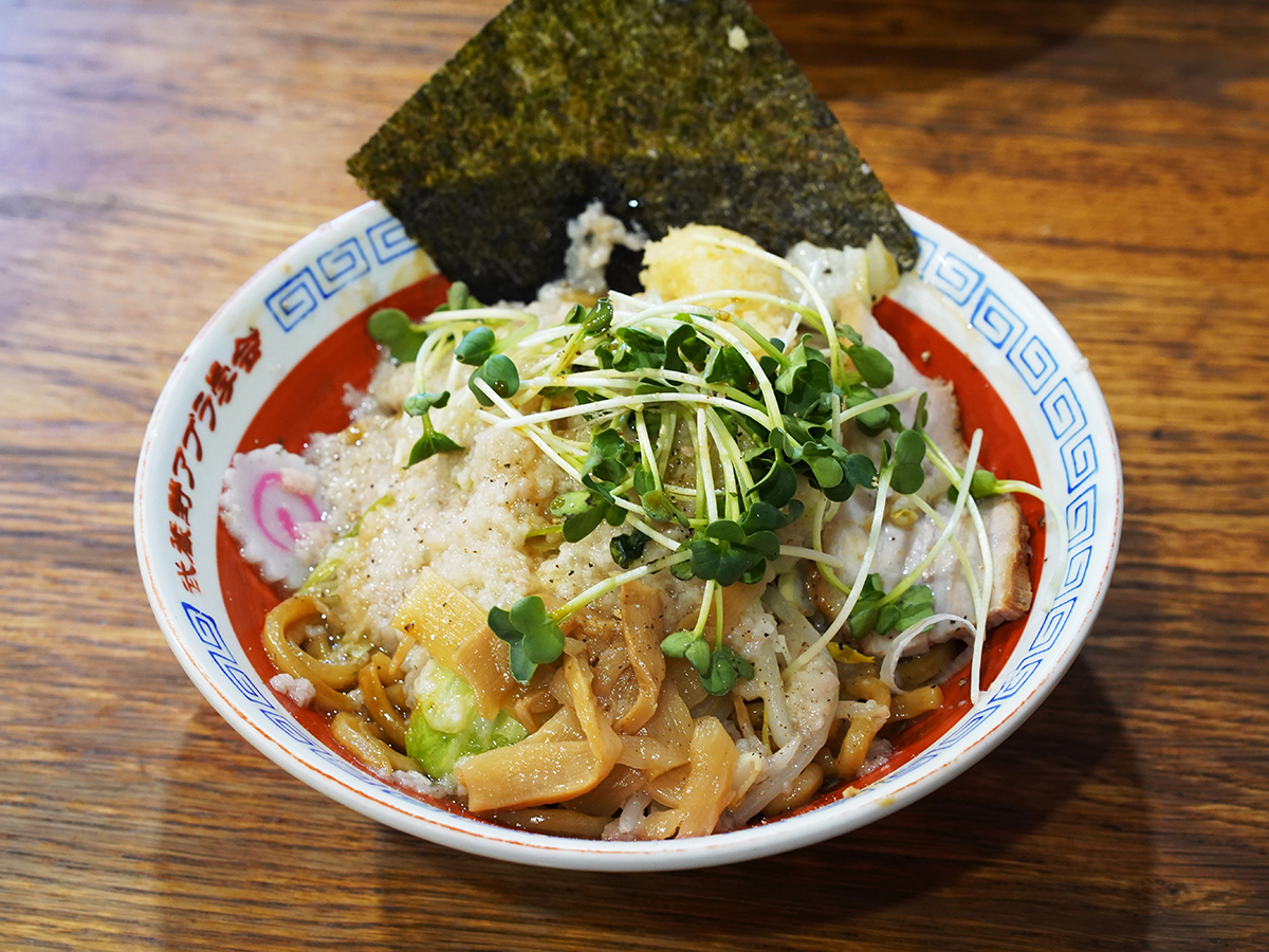 定番メニューの「濃厚油そば」(並盛り)=早大近くの油そば専門店「武蔵野アブラ學会」が15周年