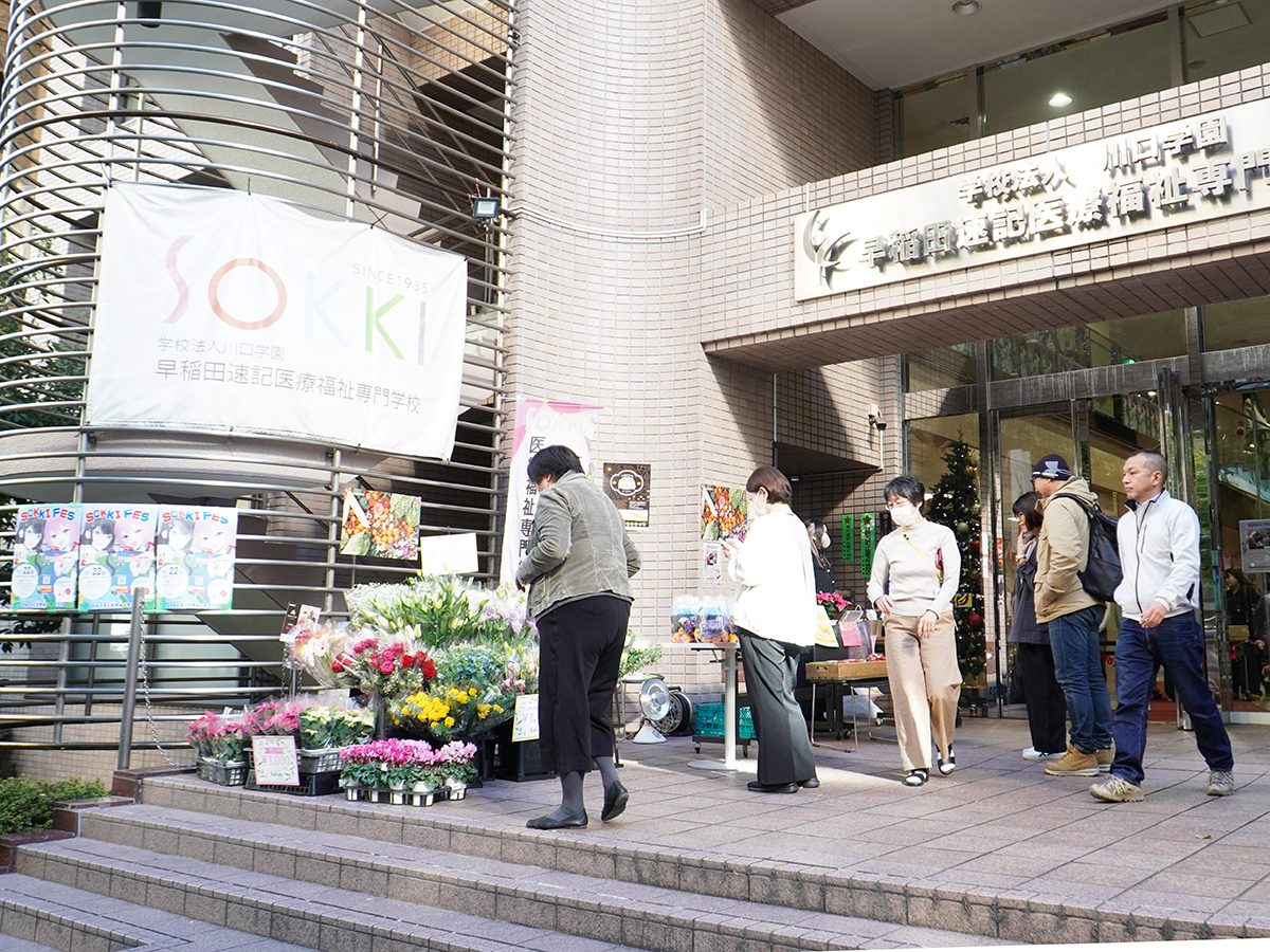マルシェの様子=高田馬場の「早稲田速記医療福祉専門学校」で学園祭