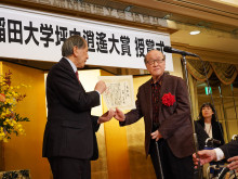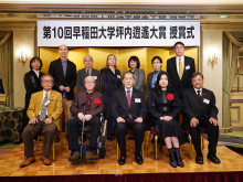 「第10回 早稲田大学坪内逍遙大賞」の授賞式が12月1日、リーガロイヤルホテル東京(新宿区戸塚町1)で行われ、大賞の沼野充義さん、奨励賞の井戸川射子さんが出席した。
