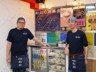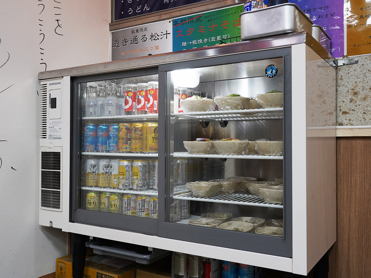 新たに導入した冷蔵ケース=高田馬場の立ち食いそば「松石」がお疲れ様セット
