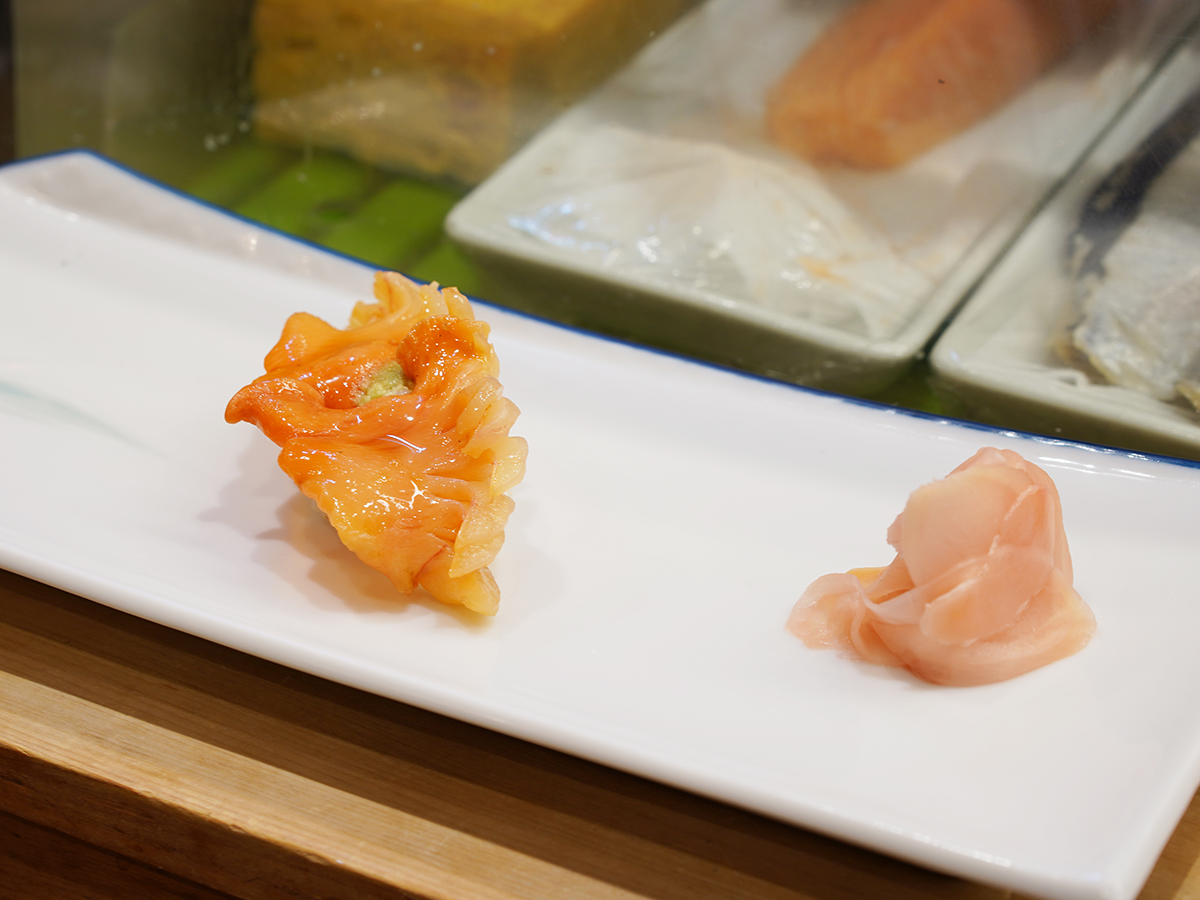 羽ばたく鳥をイメージした赤貝=タイトルは「寿司一貫」、西早稲田の「八幡鮨」4代目が90年の記憶を本に