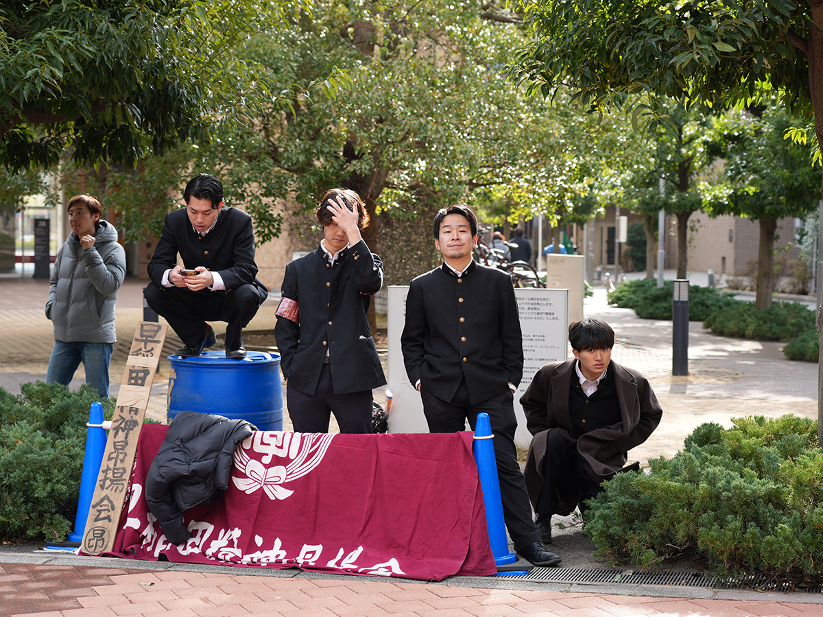 現役早大生による受験生の応援の様子=早大で入試の一般選抜