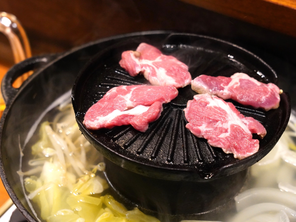 「羊のロッヂ」 岩塩で食べる生ラム肩ロース=高田馬場ではしご酒イベント「高田馬場サケまつり」