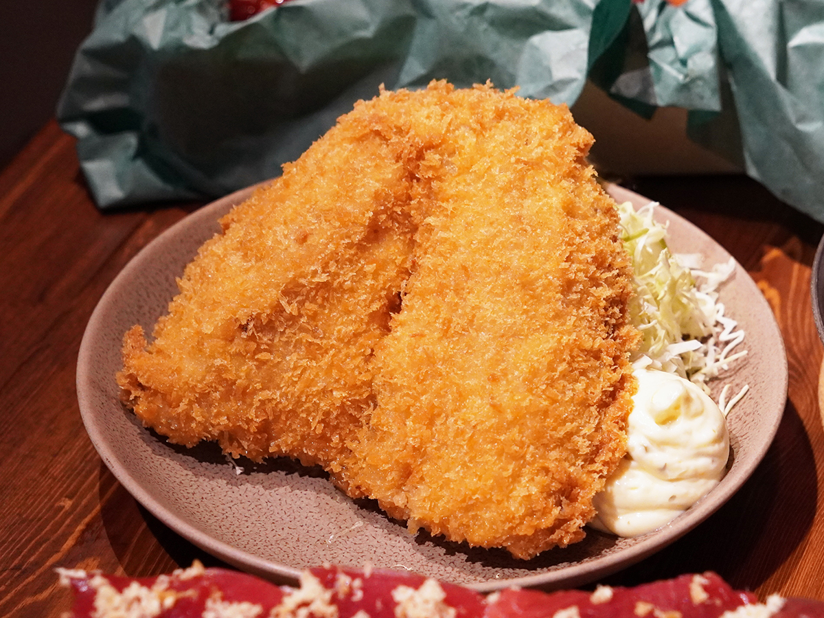 「漁師の肉厚アジフライ」=高田馬場駅前に海鮮居酒屋「魚群」