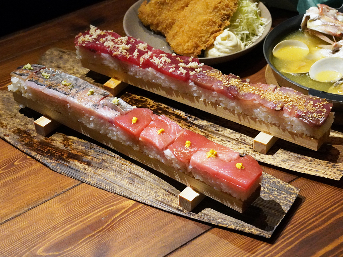 「押し寿司」=高田馬場駅前に海鮮居酒屋「魚群」