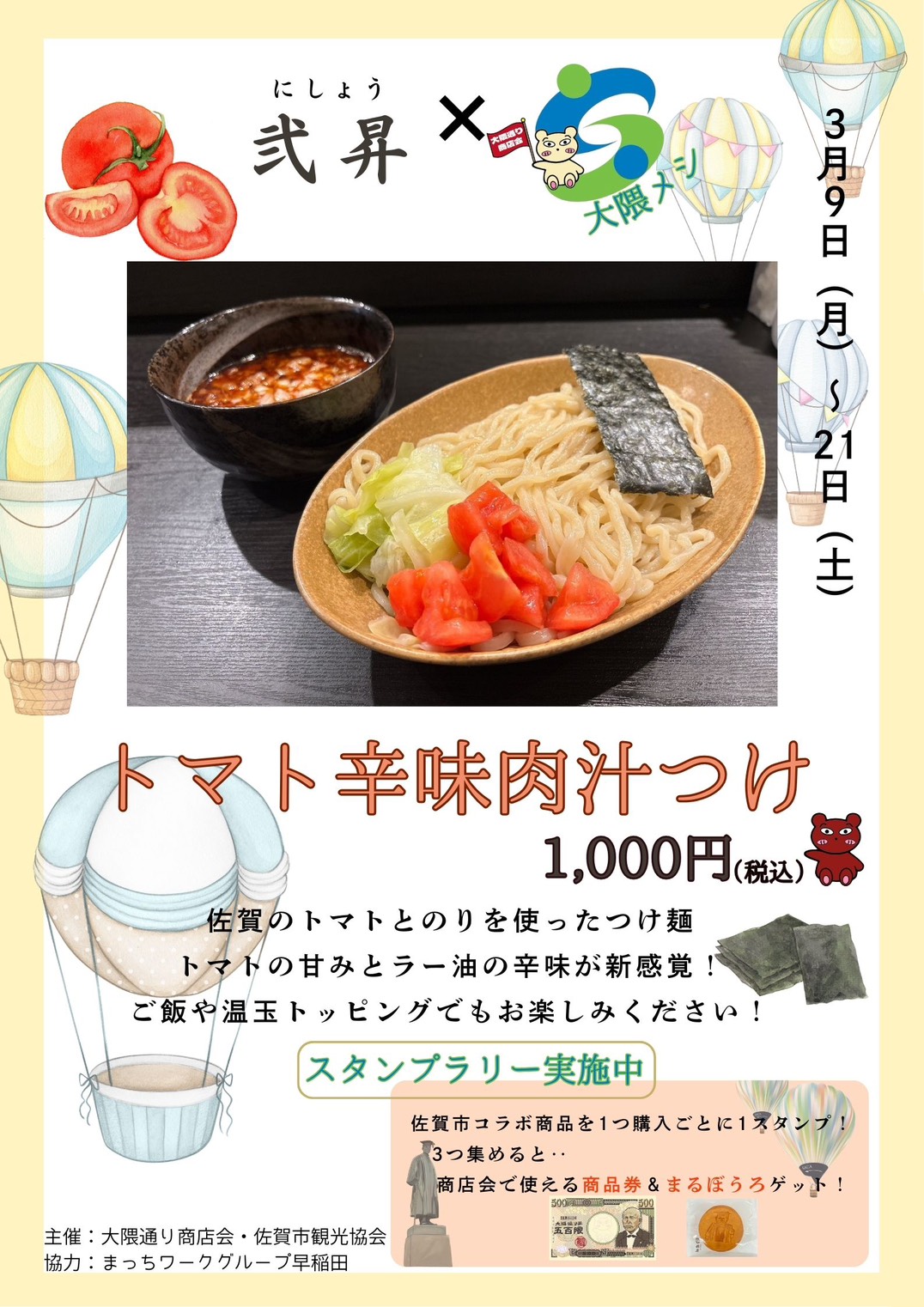 「まっちワークグループ早稲田」のメンバーが制作したポスター その5=大隈通り商店会が佐賀市の食材で「大隈メシスタンプラリー」