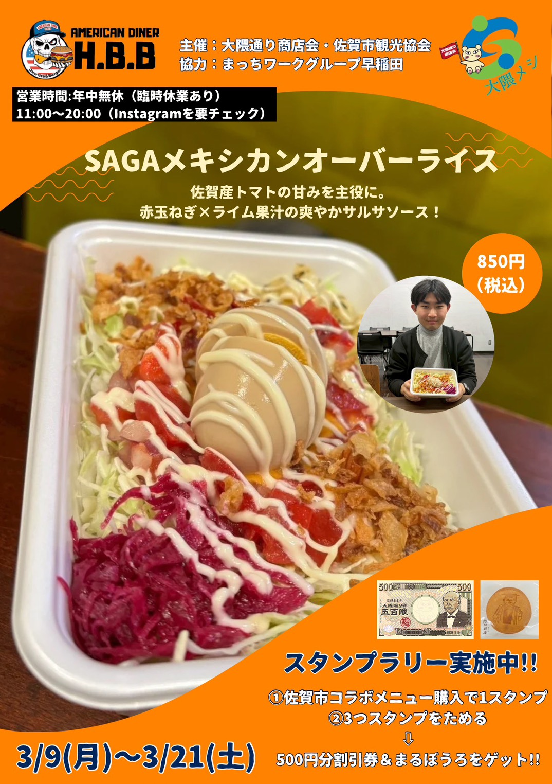 「まっちワークグループ早稲田」のメンバーが制作したポスター その6=大隈通り商店会が佐賀市の食材で「大隈メシスタンプラリー」