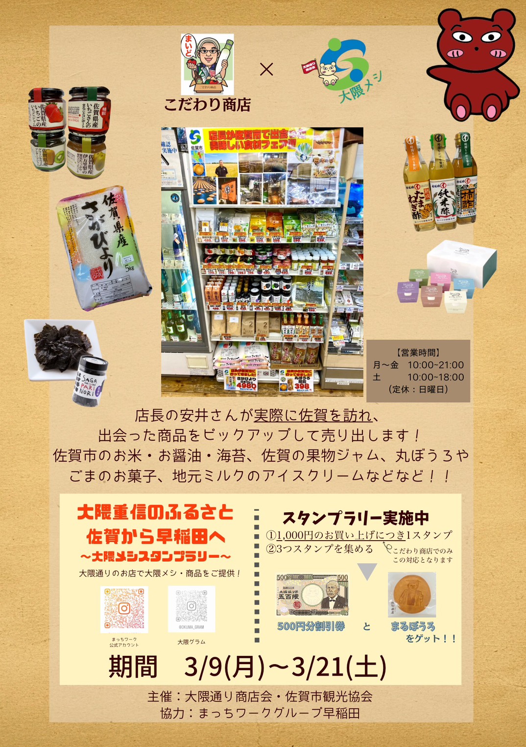 「まっちワークグループ早稲田」のメンバーが制作したポスター その13=大隈通り商店会が佐賀市の食材で「大隈メシスタンプラリー」