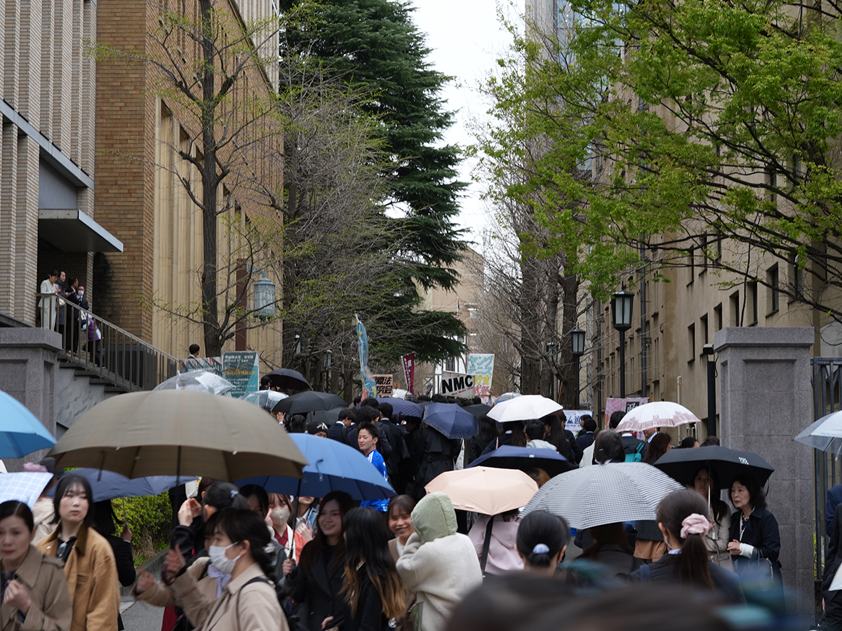 早稲田キャンパスの新歓の1日目の様子 その1=早稲田大学で入学式