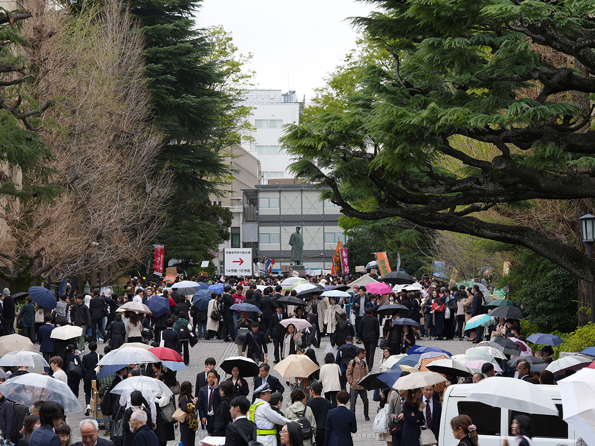 早稲田キャンパスの新歓の1日目の様子 その2=早稲田大学で入学式