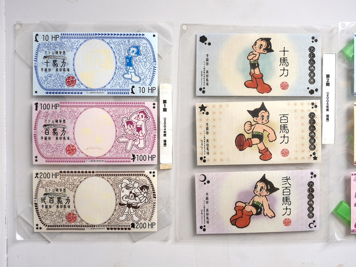 部室に飾られている過去の「アトム通貨」その1=地域通貨「アトム通貨」、今年度の流通がスタート